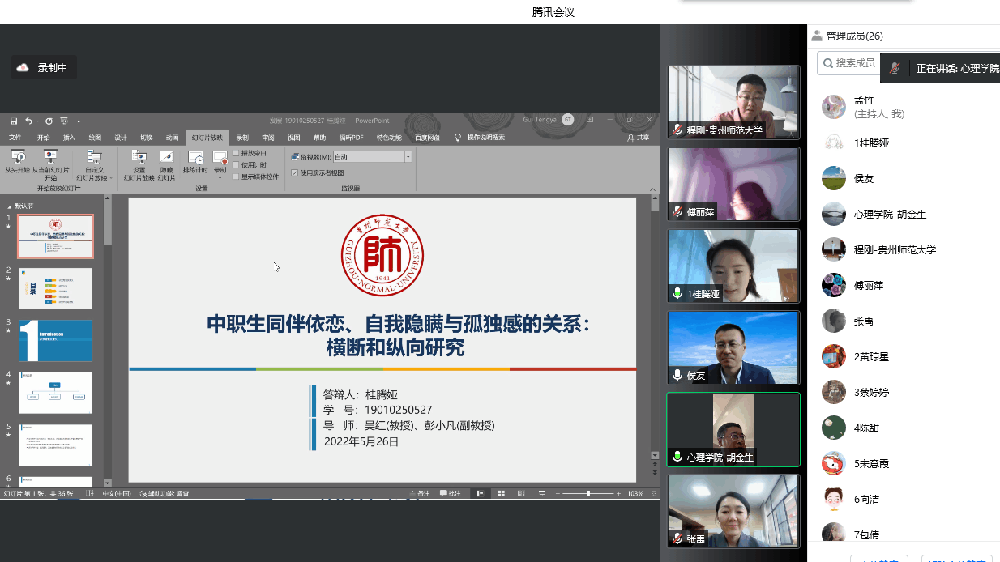 526日和27日,mk体育开展了2022届硕士研究生学位论文答辩工作。本次答辩采用线上线下结合的方式,利用线下会场以及线上腾讯会议同步进行。此次答辩分别邀请了mk体育李先春教授、中科院心理所王力研究员、天津师范大学杨海波教授、辽宁师范大学胡金生教授、陕西师范大学王勇慧教授、东北师范大学姜英杰教授、中山大学高定国教授、山东师范大学司继伟教授、河北师范大学贾宁教授、西北师范大学丁小斌教授、浙江师范大学李新宇教授、遵义师范公司朱海教授、内蒙古师范大学侯友副教授、首都师范大学师保国教授、重庆文理公司葛缨教授、福建师范大学张锦坤教授等17名校外专家担任答辩委员会主席及委员,与校内的22名专家组成8个答辩组。