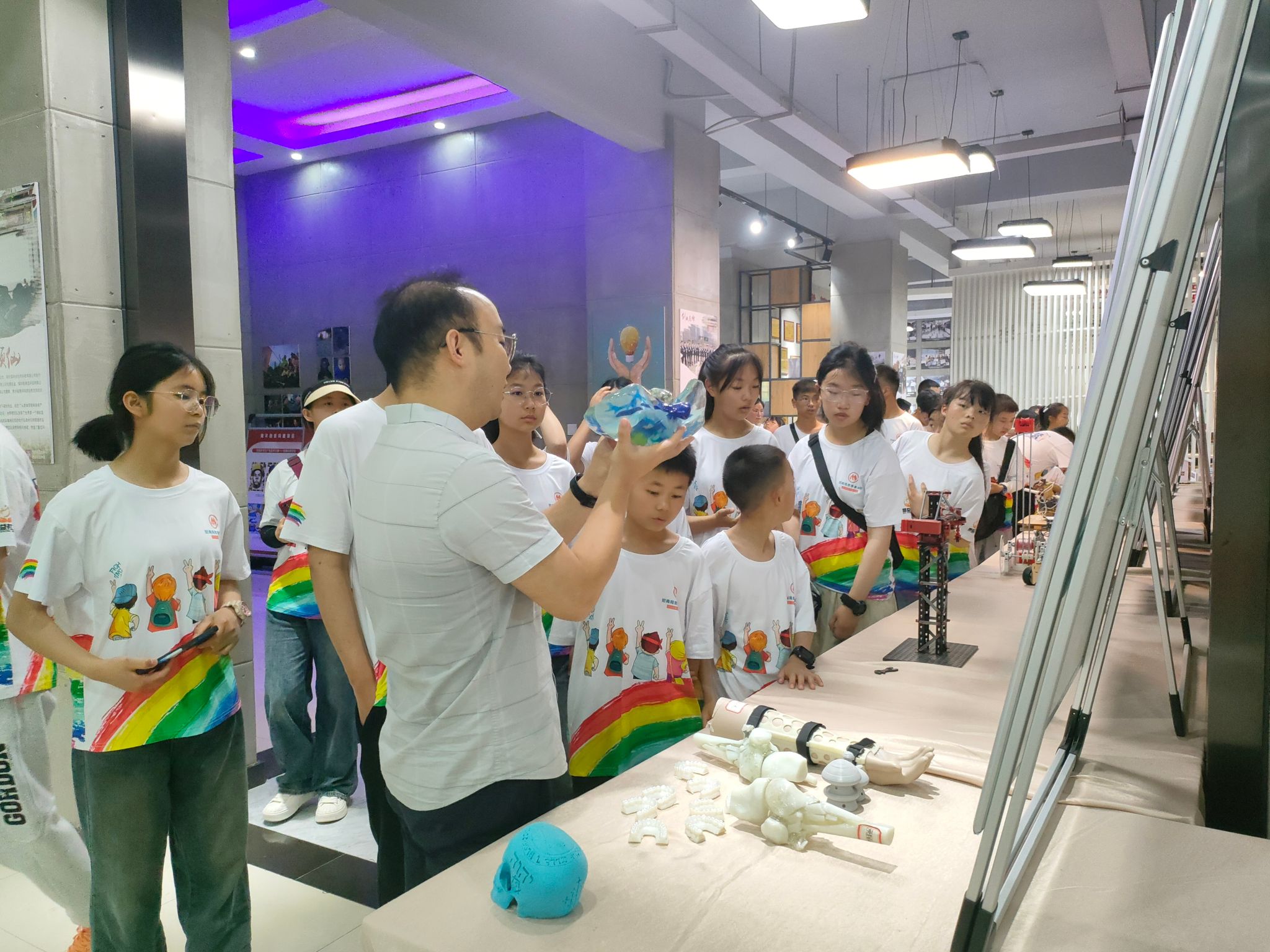 接着,同学们来到创新创业公司教育基地,观看3D打印技术和人工智能机器人等高科技,并亲自动手制作了简单脱水器模型,让同学们更加真切地感受科技无限的魅力,同时也在心里埋下了一颗渴求知识的种子。