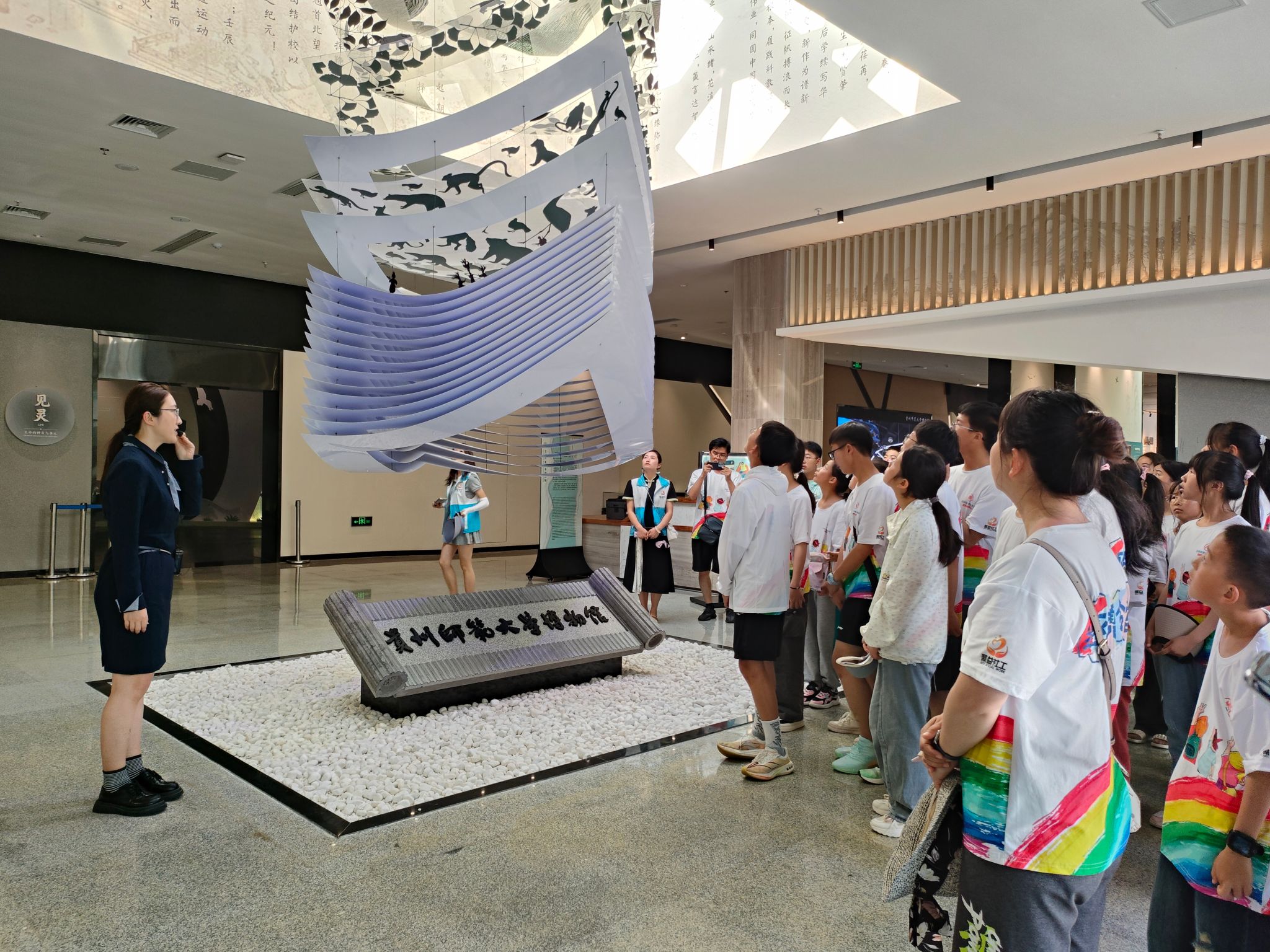 研学团到达公司后,在公司志愿者带领下走进mk体育官方平台博物馆,在博物馆讲解老师的带领下,深入了解了贵州地质类标本、动植物标本、世居民族传统服饰、银饰、民族乐器、图片和数字资源信息。丰富的历史文化底蕴和科研成果展示,让同学们感受到了浓厚的人文气息和学术氛围,进一步增强文化自信,厚植文明根脉。