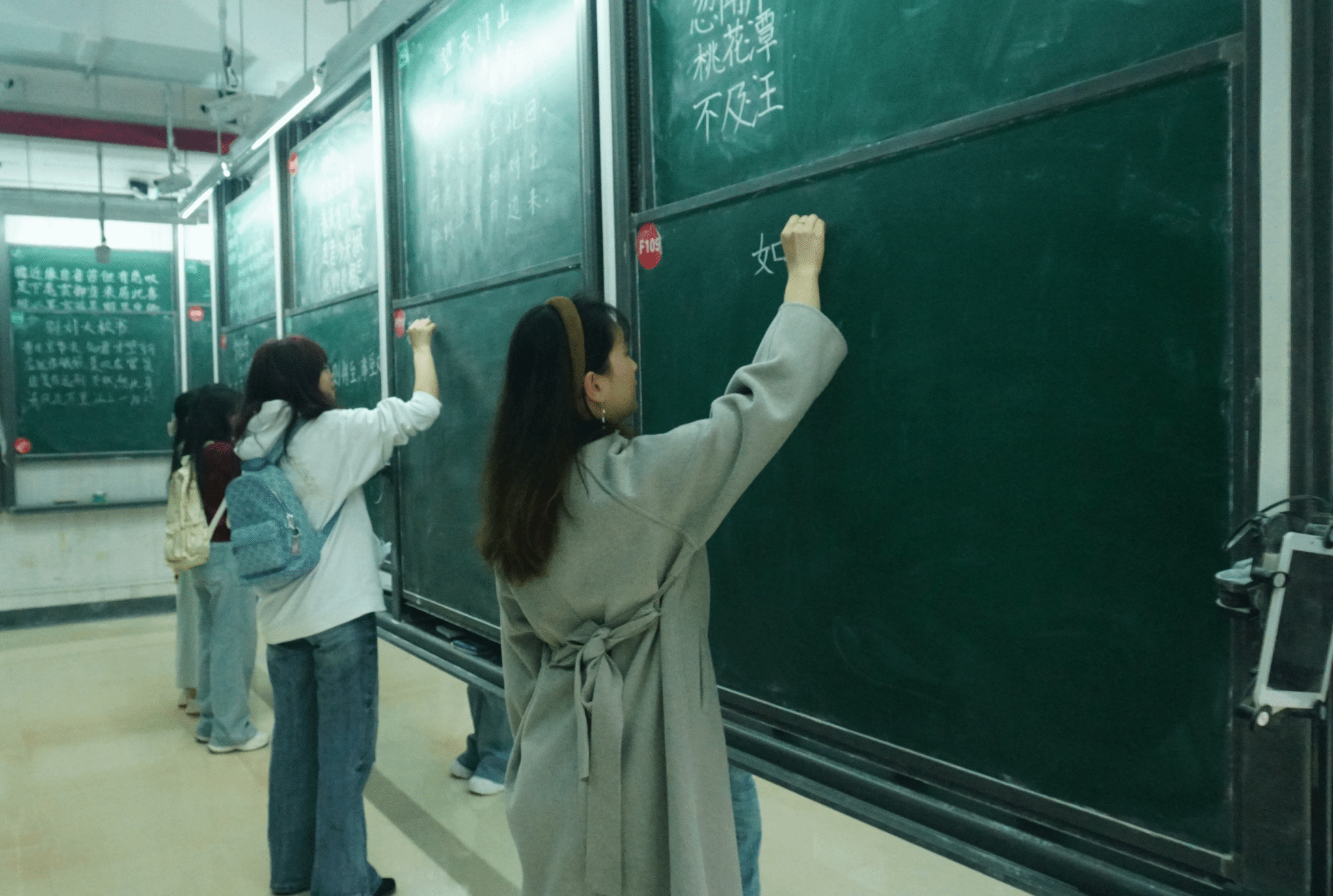 27日上午,王旭老师开展了粉笔字的学习与培训。王老师向同学们讲解了相关的书写粉笔字的知识后,让同学们投身实践,进行粉笔字练习,不断纠错,以达到令人满意的成果。