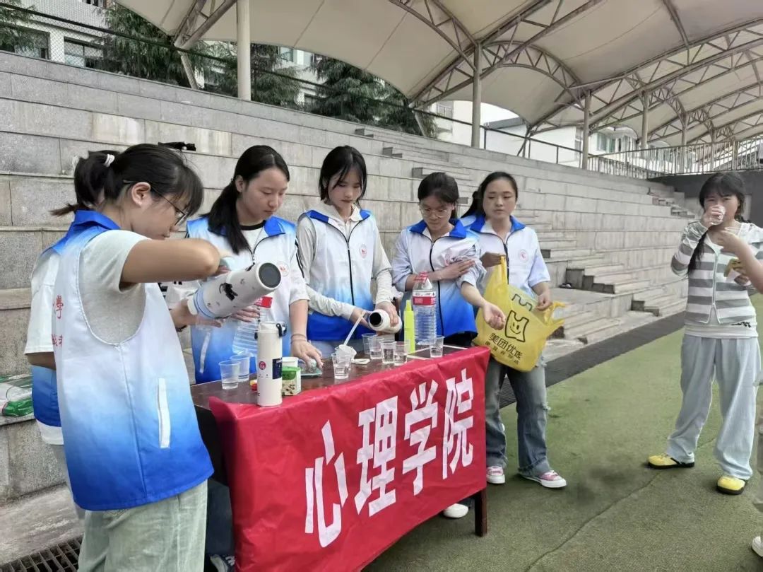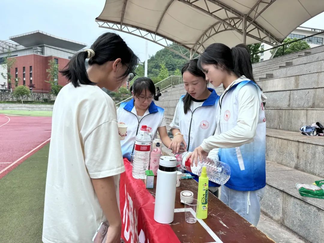 活动伊始,志愿者们先备好热水、葡萄糖等补给品和棉签、碘伏等消毒物品,并提前到场布置服务点。活动过程中,面对下雨这一突发状况,志愿者们灵活应对,及时将物资搬至遮挡棚下并时刻关注公司同学们的动态;体测结束后,志愿者们及时递上热水或葡萄糖水以补充体力和驱寒,为公司体测的同学提供了暖心的服务。最后,志愿者们齐心协力,将活动场地清理干净,并将桌椅、物资运回。