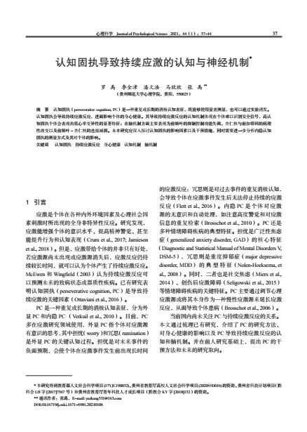 4.博士生导师罗禹副教授作为第一作者,张禹副教授作为通讯作者,在CSSCI期刊《心理科学》发表了题为“认知固执导致持续应激的认知与神经机制”的学术论文。