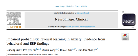 公司夏礼胜博士以第一作者身份在医学领域SCI中科院二区Top期刊NeuroImage: Clinical(2021年最新IF=4.881)发表题目为“Impaired probabilistic reversal learning in anxiety: Evidence from behavioral and ERP findings”的研究论文。该研究揭示了焦虑损害反馈学习进而影响后继决策的脑电机制,为深入理解焦虑人群的认知特征提供了理论与数据支撑。