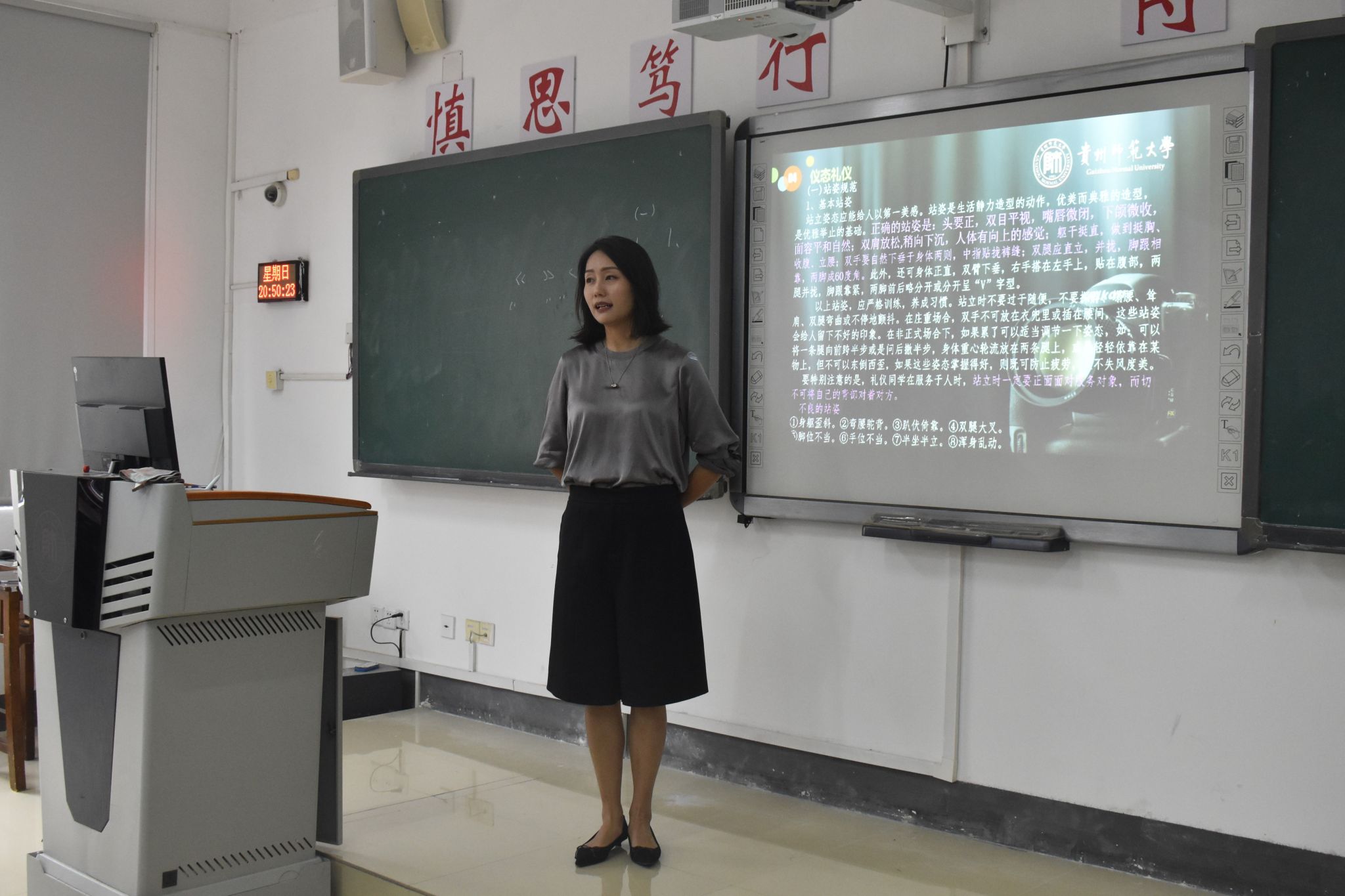 随后,饶老师从专业角度解析入职在岗后的日常礼仪规范。她首先说明礼仪行为规范在日常生活以及在职场活动中的重要意义,指出礼仪交流中尊重,真诚,宽容,从俗,适度的基本原则。紧接着,从发型、面部、坐姿、站姿、行姿、着装、言谈、手势等方面具体讲解礼仪规范相关要求,为大家普及了礼仪常识,并就公司日常工作中需要特别注意的细节问题做了详细讲解。在示范交流过程中,组织参训人员进行了现场练习。