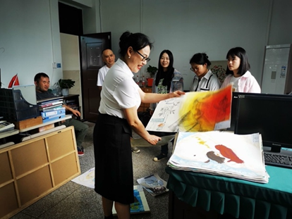 4月17日上午,罗老师带领实习生们到美术组办公室、教育处办公室与各位美术组老师、教育处老师共同审核、筛选员工所提交的“人生天地间——我与世界”主题心理画作品,并选定入围作品,为5.25心理活动周系列活动进行准备。