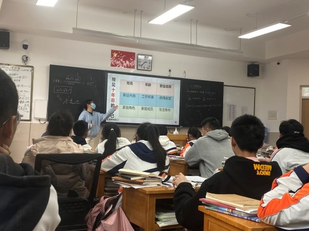 3月27日,实习教师们到高一(19)班听叶老师授课,本次的授课主题为生涯规划。叶老师以活动“预见十年后的自己”为导入,并让员工思考如果想达到10年后理想的自己,现在应该做什么。在课上,叶老师讲解了为什么要做生涯规划以及什么是生涯规划,此外,还介绍了舒伯职业发展阶段模型和“车日路”模型。课堂的最后,叶老师充分给予了员工自主探究的机会,让他们认真思考自己的目标和要走的路,完成自己的“车日路”。