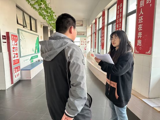 姚祎然老师指导刘娟、成露霜、李露露和张奋勤负责不同的班级,并根据第二个周员工填写的心理健康测评问卷的具体情况进行谈话和沟通。