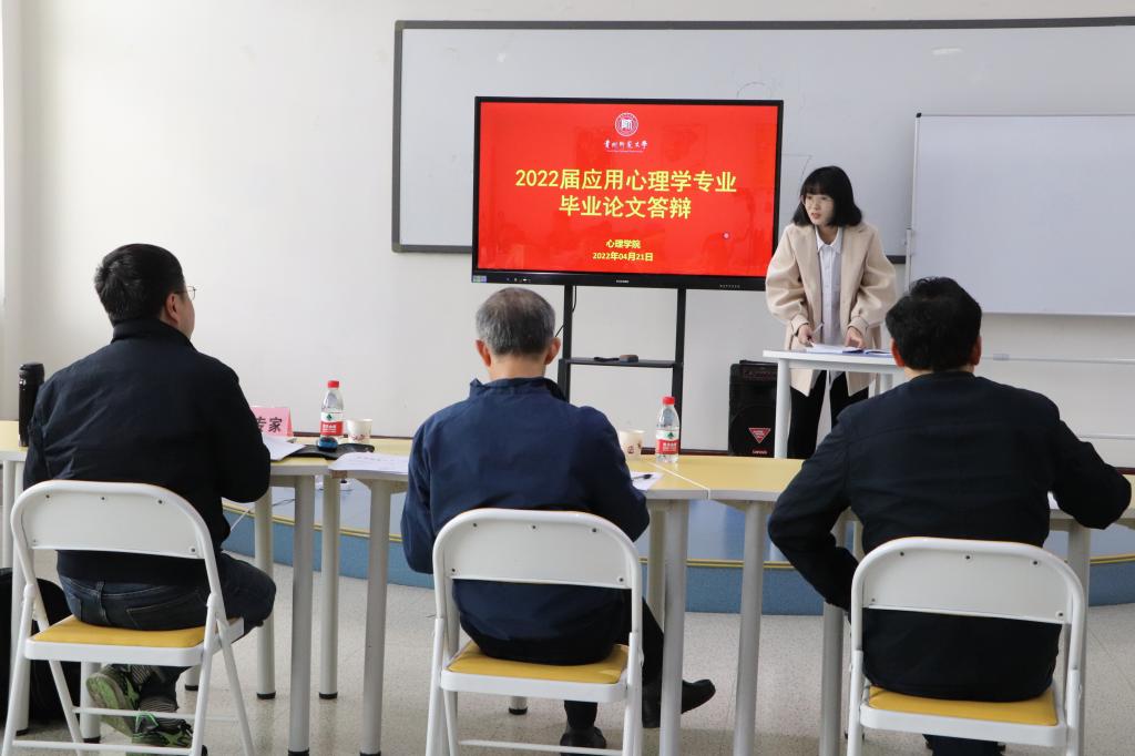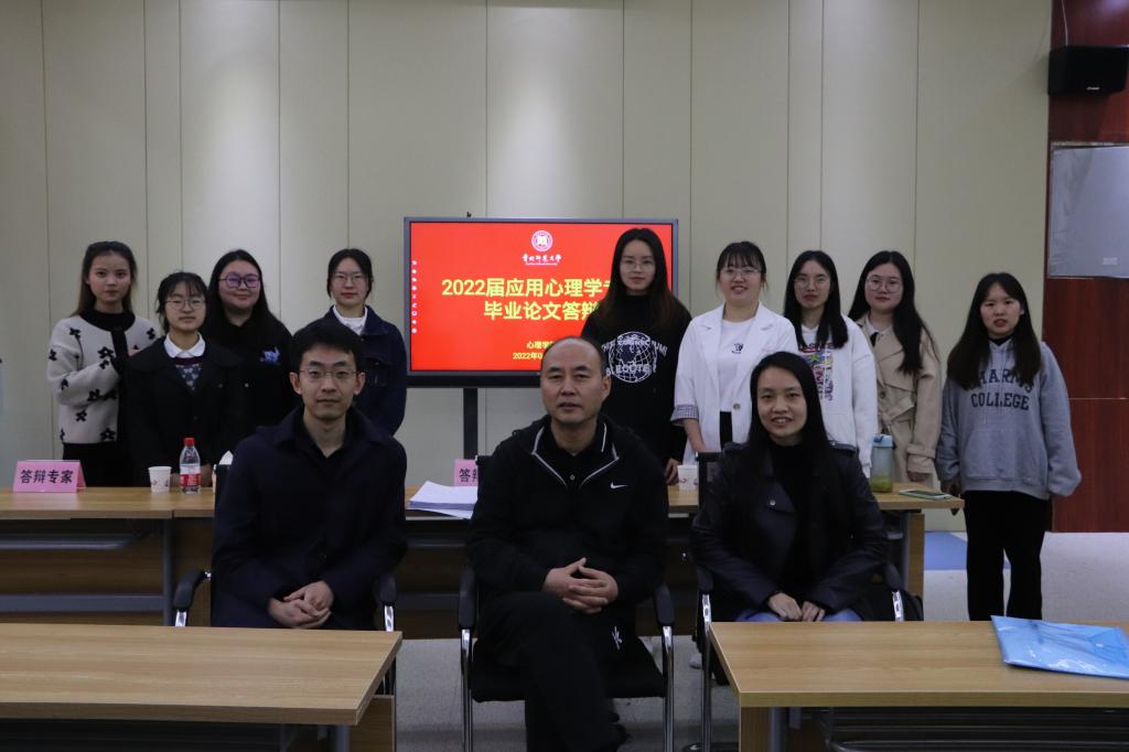 2018级应用心理学专业64名符合毕业论文(设计)答辩资格的本科生分为7个组进行答辩。每组由3名答辩委员、2名答辩秘书、9-10名答辩员工组成。