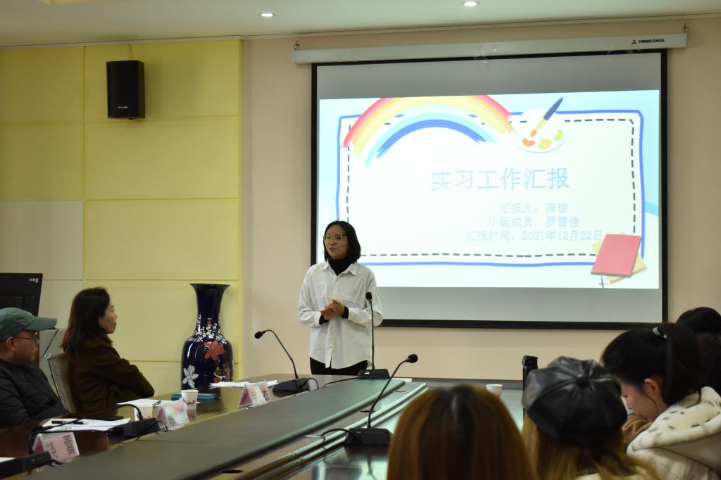 陈如丽等五位同学作为实习生代表,分别结合各自实习公司工作实际,从课堂教学、班主任管理、心理咨询室建设等几方面进行了工作总结和经验分享。他们纷纷表示,经过3个月的教学实习,他们真正体会到“纸上得来终觉浅,绝知此事要躬行”的道理,认识到自己作为师范生在教学经验上还有许多不足,需要在接下来的学习中不断加强。但通过实习,他们也感受到作为人民教师肩上沉甸甸的责任和使命,也激励着他们向着成为“四有”好老师不断奋进。