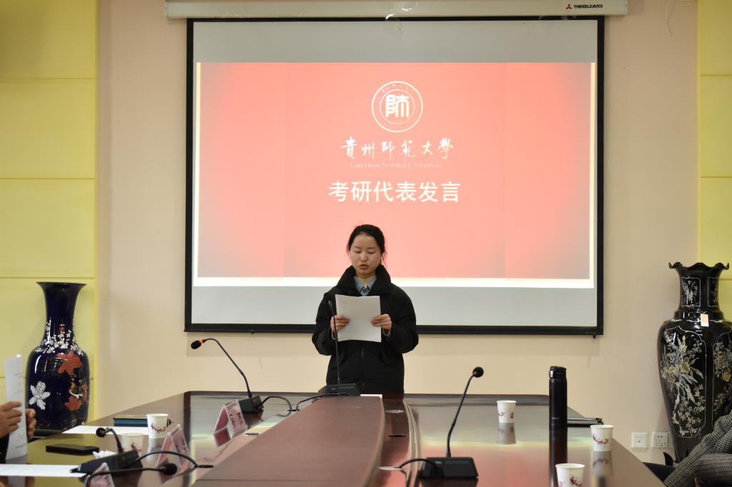 考研员工代表黄静作了交流发言。她以自身的考研动机为例,讲述了备考过程中的艰辛,也表达了为了理想不言放弃的决心和勇气。她向考研路上公司以及老师、同学们给予的关心与鼓励由衷地表示感谢,为即将迈进考场的同学们加油打气,祝愿全体考研同学旗开得胜、金榜题名。