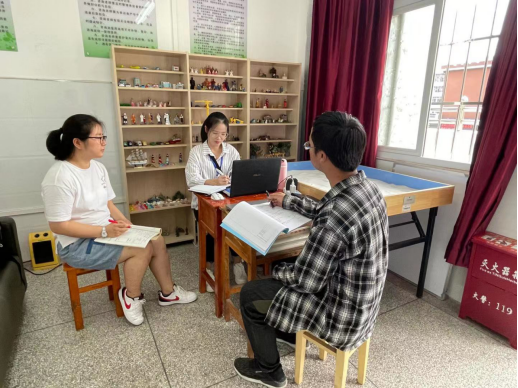在将近一个月的实习工作中,除了教学工作外,刘老师还指导实习生其他工作,例如:学习贵阳市心理健康云平台的使用、了解心理健康筛查流程,同时协助刘老师对初一年级员工进行心理测评工作,引导员工正确使用心理辅导设备以及协助公司老师进行守乐童计划,检查员工中午用餐情况,监督员工在用餐等。