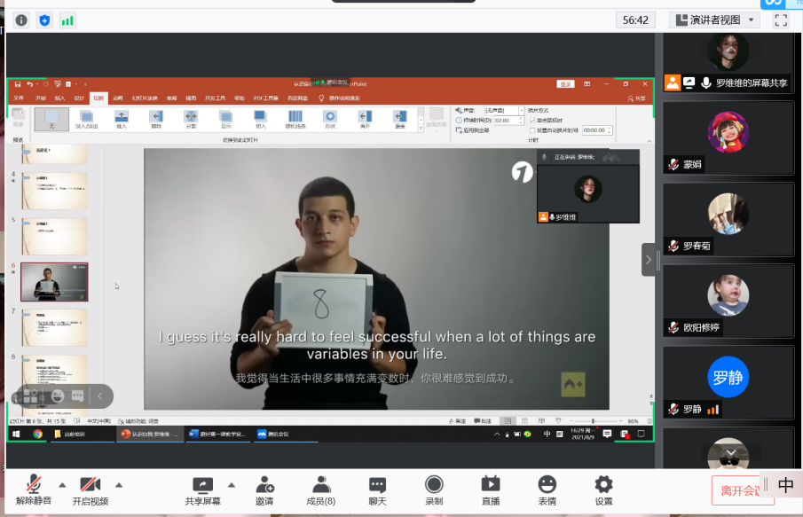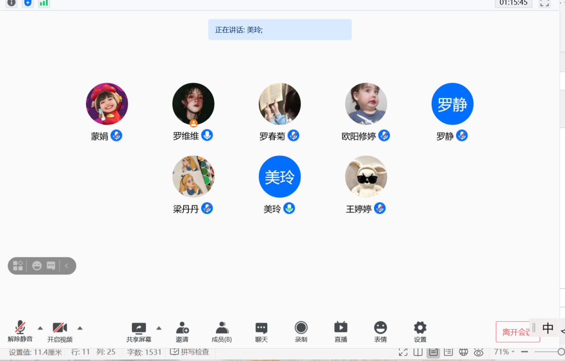8月9日14:00,美玲老师与第三组成员通过线上腾讯会议开展了第三次会议,会议主要讨论和指导小组成员的教学设计,会议大致流程:每个成员5分钟讲课--同学意见--老师点评--下次会议安排--总结。