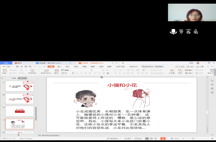 罗春菊:1.每个活动要有总结性的建议2.要挖掘深层爱情的含义。