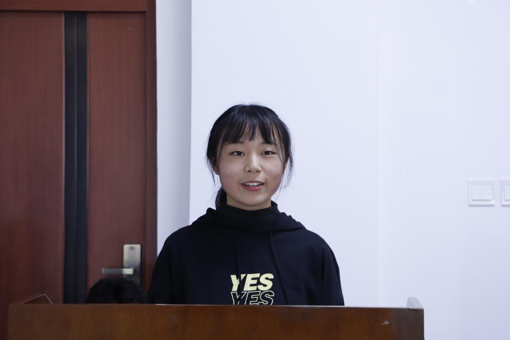 2018级赵可怡作为老生代表发言,她结合自己老员工活经历,与同学们一起分享了学习和生活故事,激励大家勇于追求梦想,珍惜韶光,争做全面发展老员工。