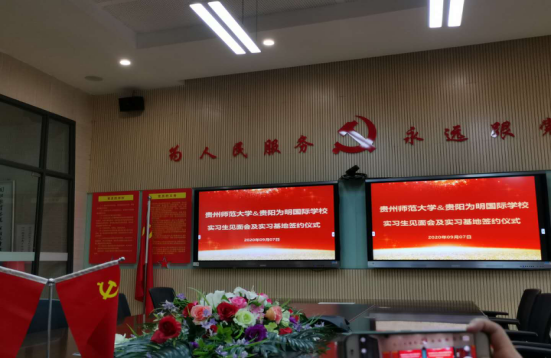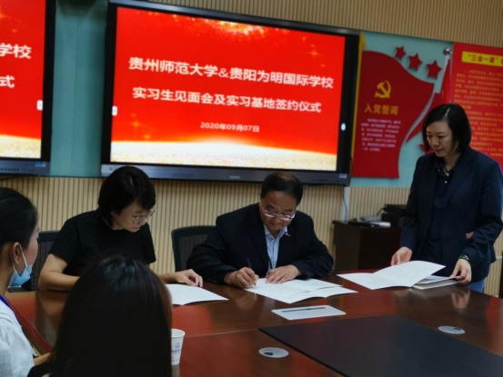 9月8日下午两点,苏菲老师以及六名成员准时到达贵阳为明国际公司,和相关负责人陈老师进行了初步的交接。之后,在贵阳为明国际公司(后简称为明公司)行政楼的大会议室,由崔延宁董事长主持,人力资源部主任辅助召开了实习生见面会以及实习基地签约仪式。
