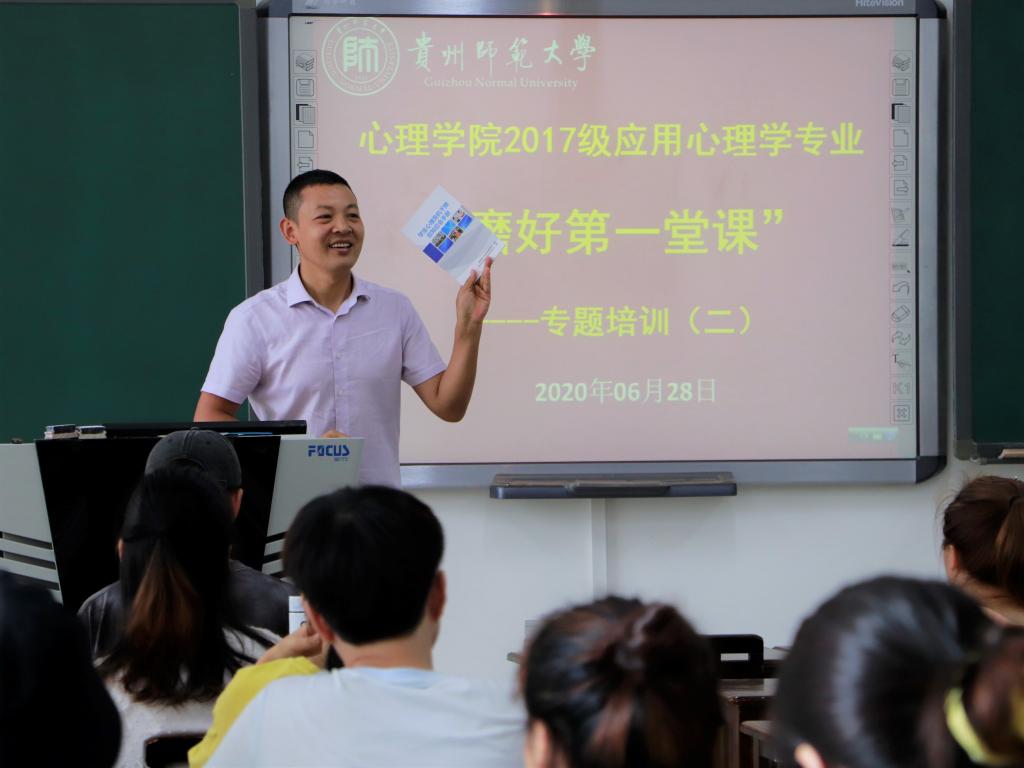 6月28日上午,mk体育在公司楼2215教室开展2017级公司产品实习岗前培训系列讲座之“中小学心理辅导室的建设与管理”,主讲嘉宾为贵阳市第一中学专职心理教师、贵阳医公司硕士研究生导师、“袁老师青少年心理援助志愿服务工作站”负责人袁章奎老师。