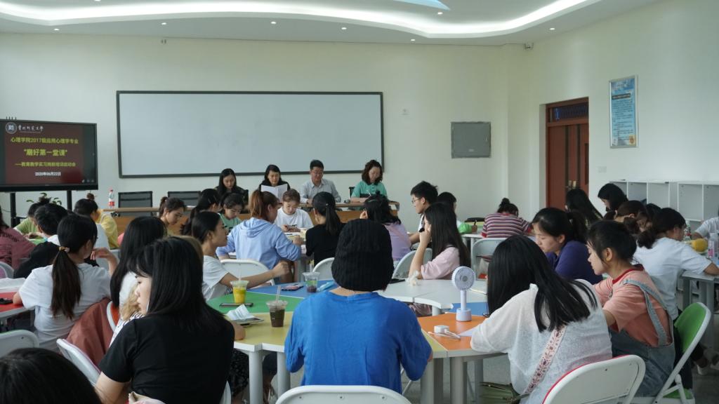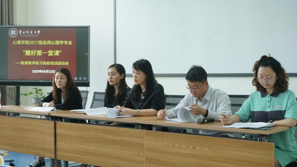 程刚首先介绍道,mk体育应用心理专业教学实习“磨好第一堂课”——岗前培训,自去年开始以新的模式开始实施,我们将同学们每5-6人分为一实习小组,通过校内导师与校外一线教师相结合,线上线下共同指导的方式,完成岗前集中培训、岗前分散培训和岗前培训考核三阶段任务。通过这样的方式,能有效提升同学们的师德认知水平,使同学们在实习上岗前,对国内及省内的中小学心理健康教育现状有一个较为全面的认知,增强教师职业认同感,增强为基础教育服务的意识,增强其作为实习教师的社会责任感和使命感。同时,通过校内外教师带领,使同学们对课堂教学、班级管理、专业素养等综合能力得到较大提升。