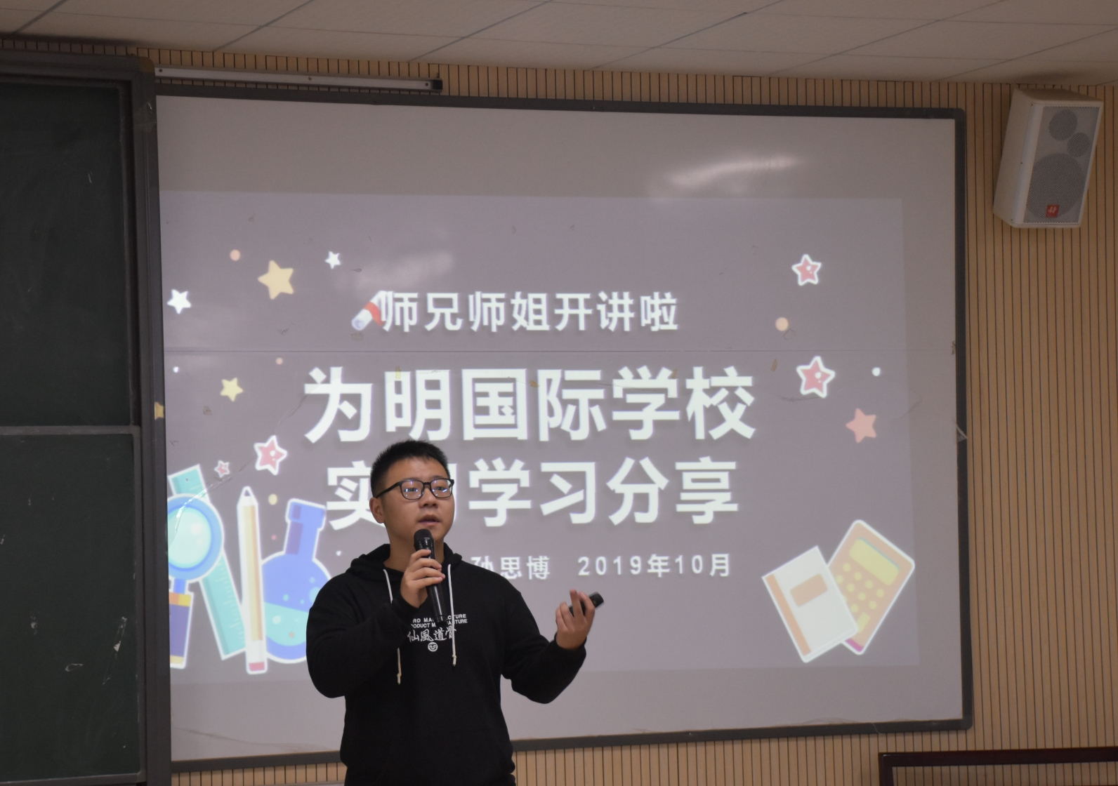 为了帮助员工更好地了解本专业在中小学的具体工作和提升员工专业素养,10月24日上午,mk体育特邀2016级应用心理学专业在外实习生孙思博于花溪校区mk体育2520教室为大家开展了实习分享交流会。公司2017、18、19级应用心理学本科生全员参加。