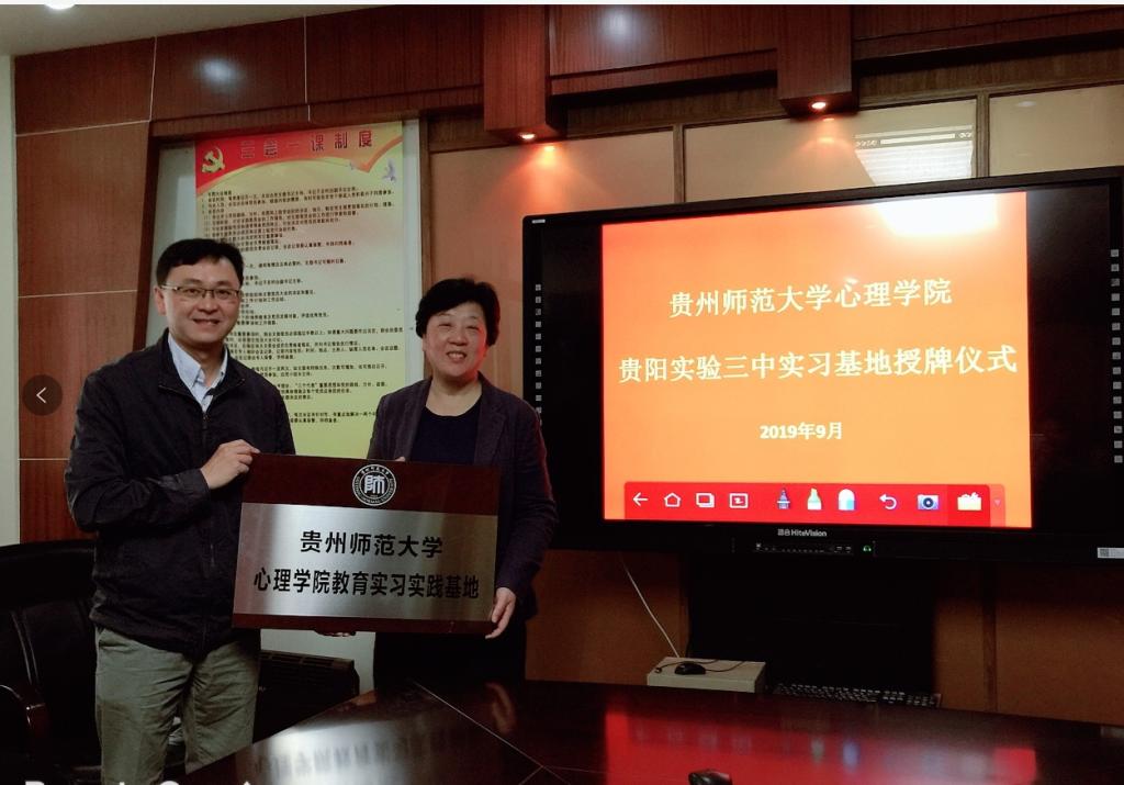 为加强公司与教育实习基地公司的联系,进一步了解实习同学在实习基地公司的学习生活情况,2019年9月26日,mk体育副经理潘运、创新创业教学部主任陈维一行到贵阳实验三中看望实习员工,并与实习员工亲切座谈。期间,潘运副经理与贵阳实验三中石艳梅董事长共同为教育实习基地授牌。