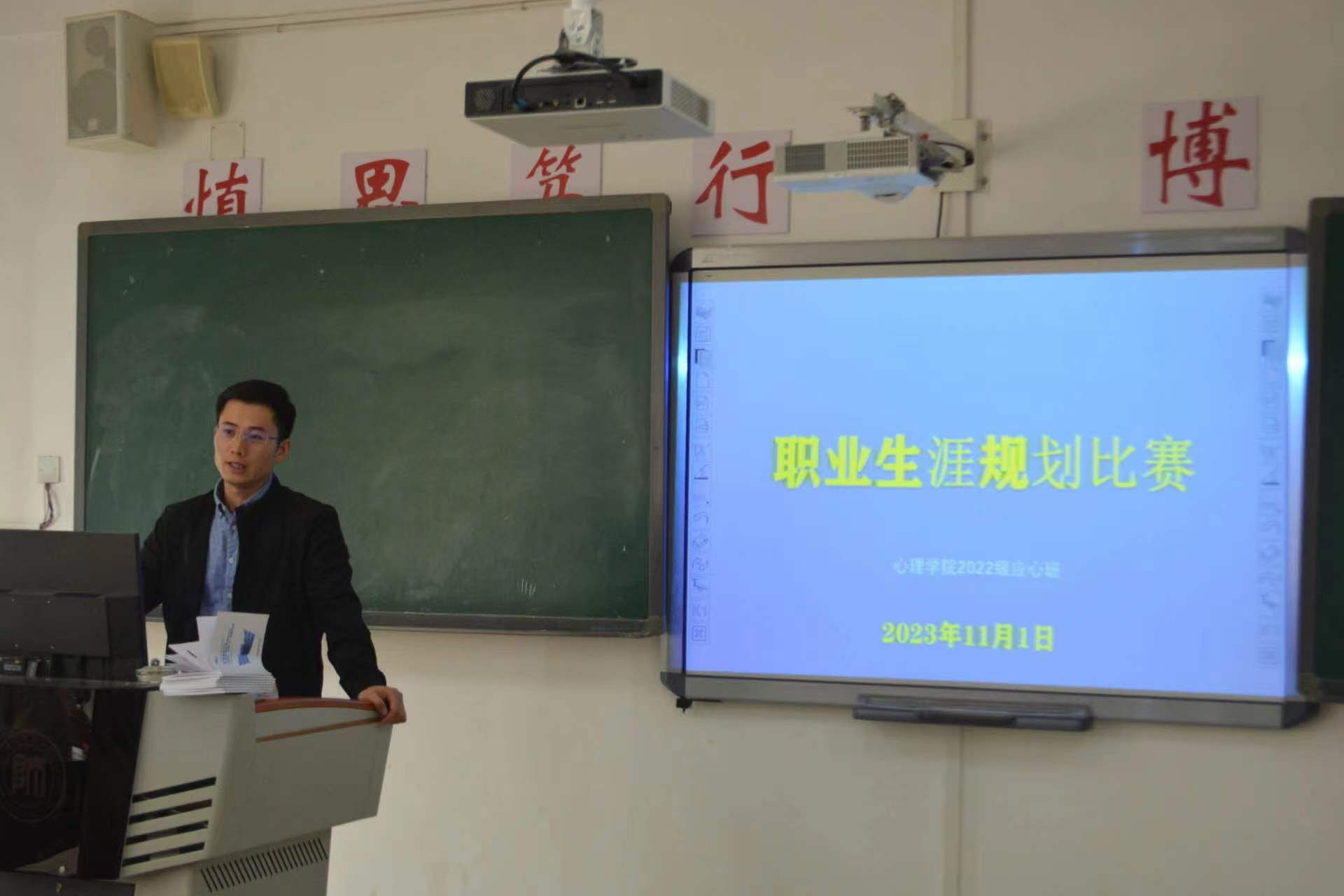 11月1日上午,2022级心理学班以模拟比赛形式进行培训,姚成奎在阐述了什么是职业生涯规划,以及职业生涯规划的重要性之后,宣布此次职业生涯规划模拟大赛正式开始。比赛过程中员工展示了个人职业兴趣测评数据,对自身优势与劣势进行了深度刨析,同时就个人职业方向进行深度解读,针对个人目标制定了近期及较长久的计划,并对其进行评估及调整。姚成奎根据选手的阐述进行了提问和指导,给予了员工鼓励和支持。