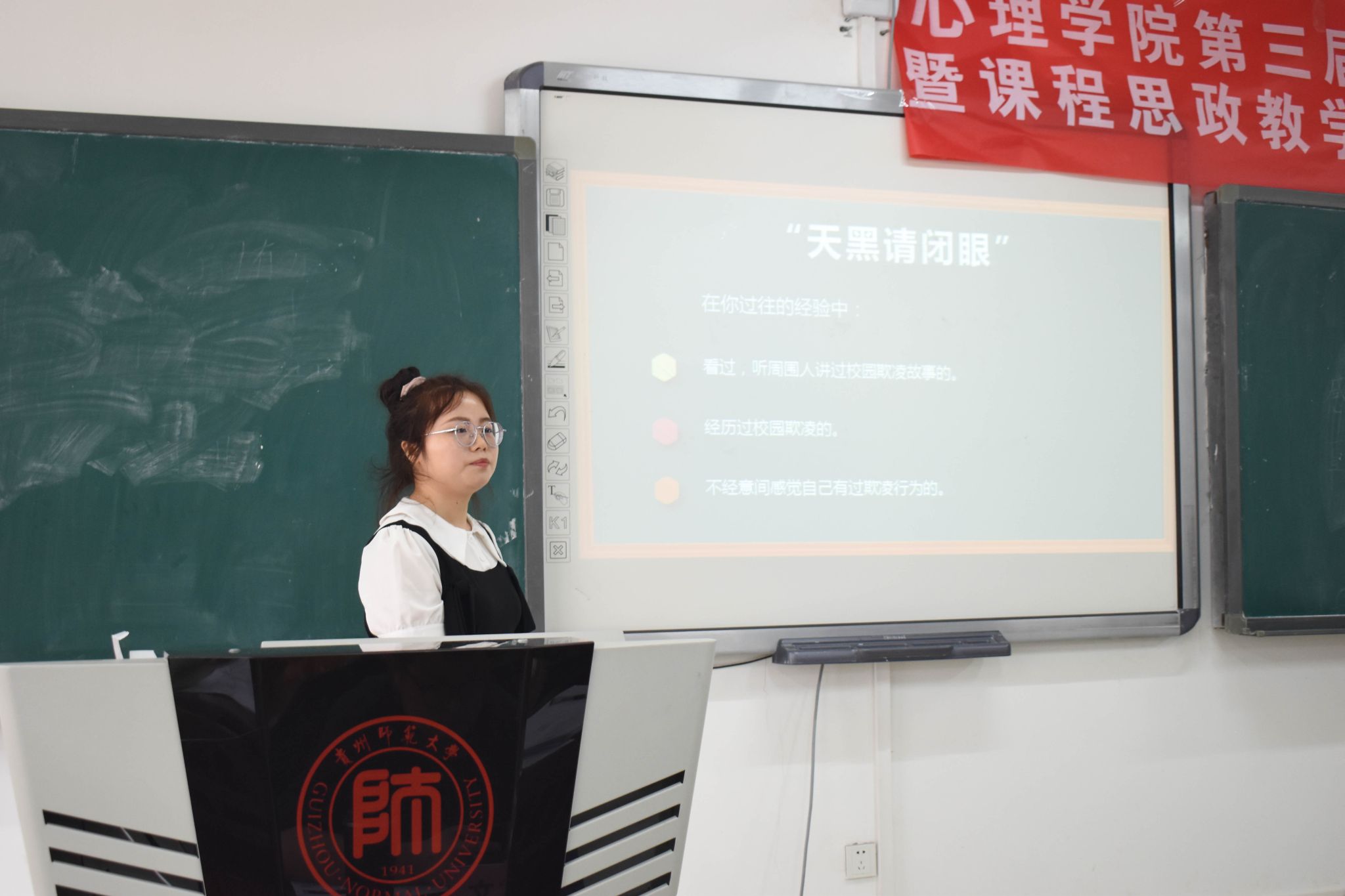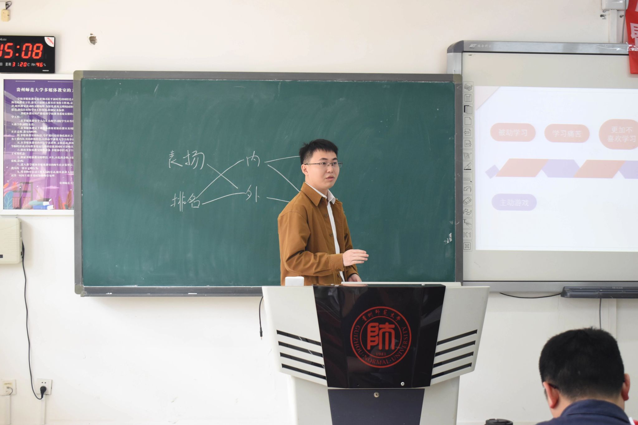 经过各年级、班级初赛的激烈角逐,本次院级教学技能竞赛共有29名本科生、研究生参与,分别于三个场地同时进行,共15位教师担任评委,全体本科生均列席观摩。本次比赛分为三分钟演讲、说课、授课、评课、评委提问等五个环节。