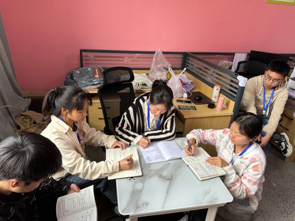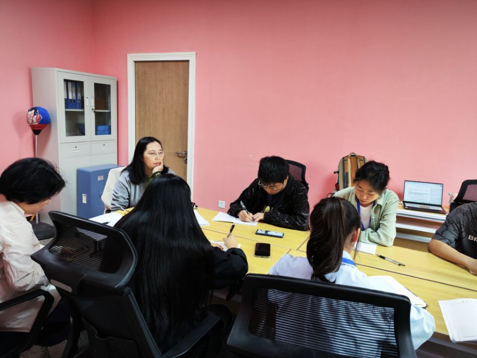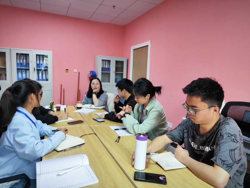 4月15日,韩雪老师、徐海燕老师以及六名实习生开了一次小会议,会议开始,韩雪老师总结了实习生前期的工作并表示肯定,也指出上课进度缓慢和实习手册等完成情况不佳,并对后期的上课、525心理健康活动日进行企划和安排。