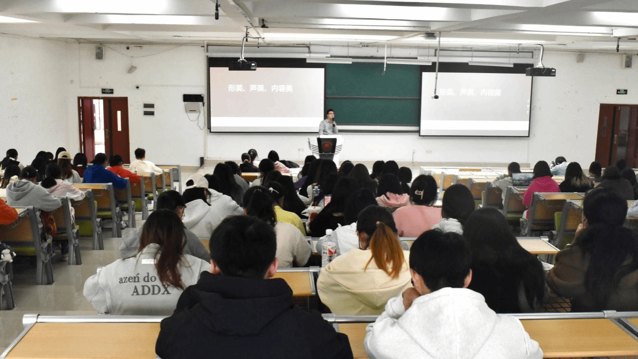 10月22日,公司邀请到黔南科技公司贺石东老师为应用心理学2022级和2023级本科生开展教师语言创作技能与训练培训。贺石东指出教师语言不仅涵盖有声语言,而且还包括无声语言,有声语言包括教师在教学过程中使用的口头语言,像讲解知识、提问、反馈等,无声语言主要是教师的肢体语言和副语言,包括眼神、手势、头语、体态、表情等。