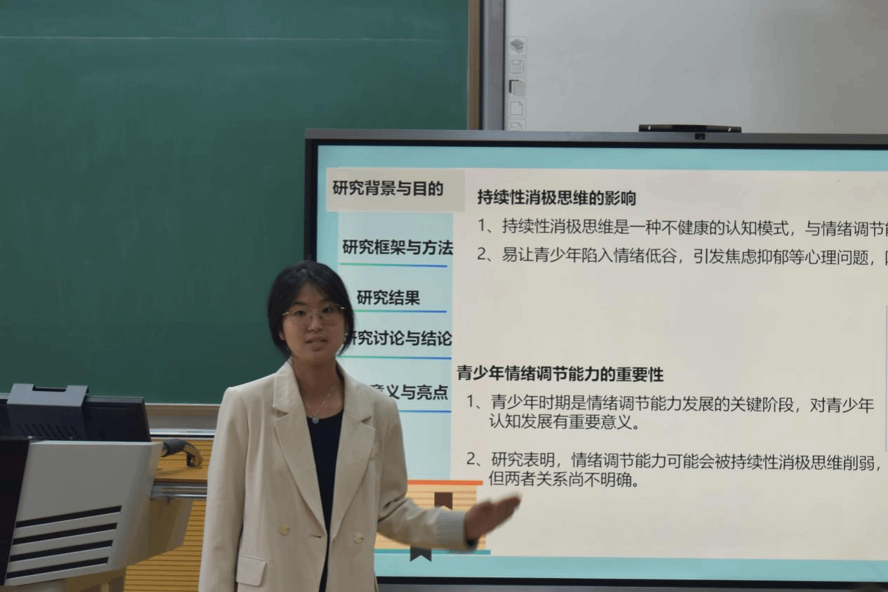 比赛中,同学们借助精心制作的PPT,自信地阐述项目。有的聚焦青少年心理健康干预,有的关注老年群体心理需求,从研究背景、创新点到研究方法,讲解细致,彰显对学术的不懈追求。