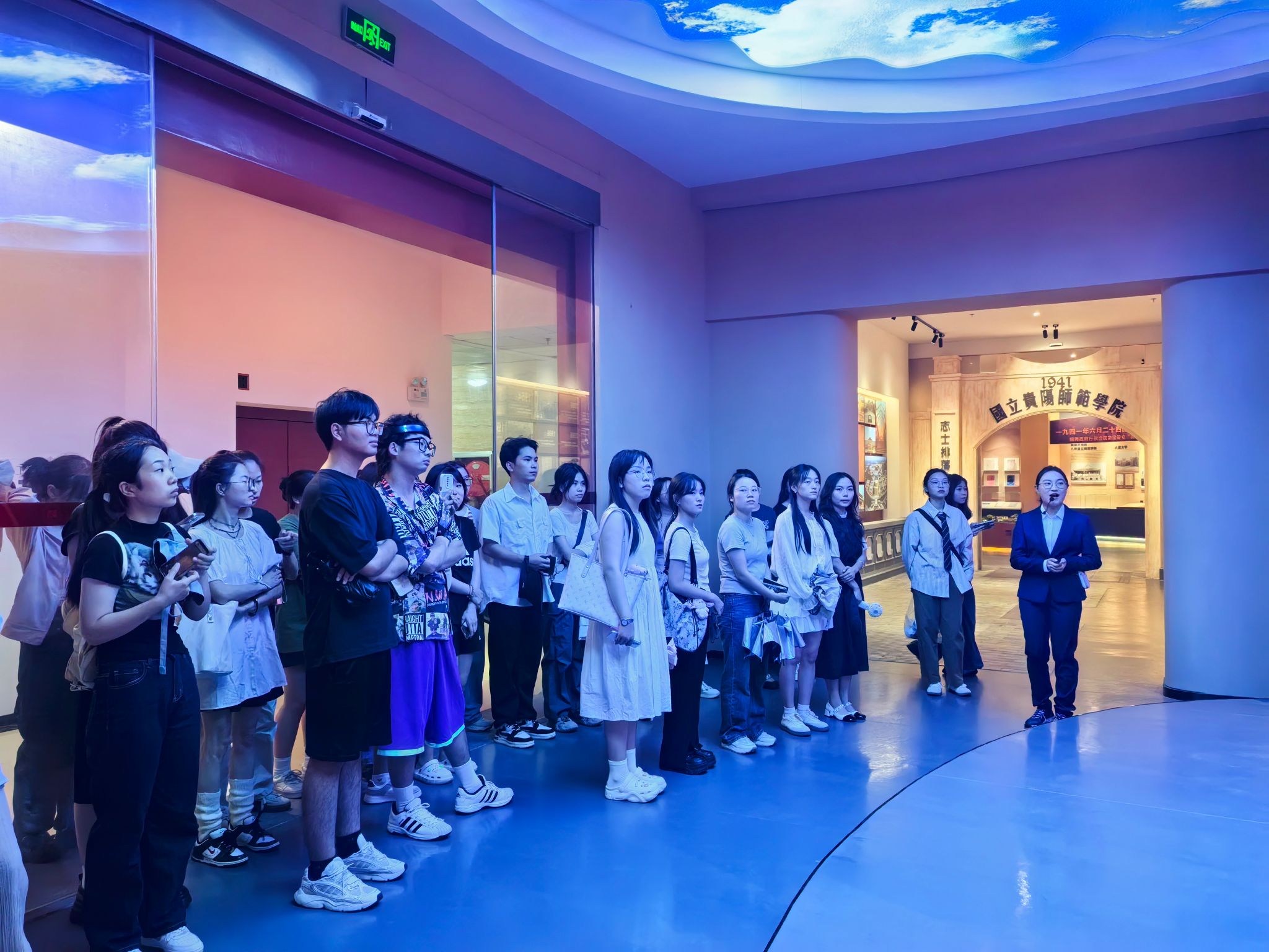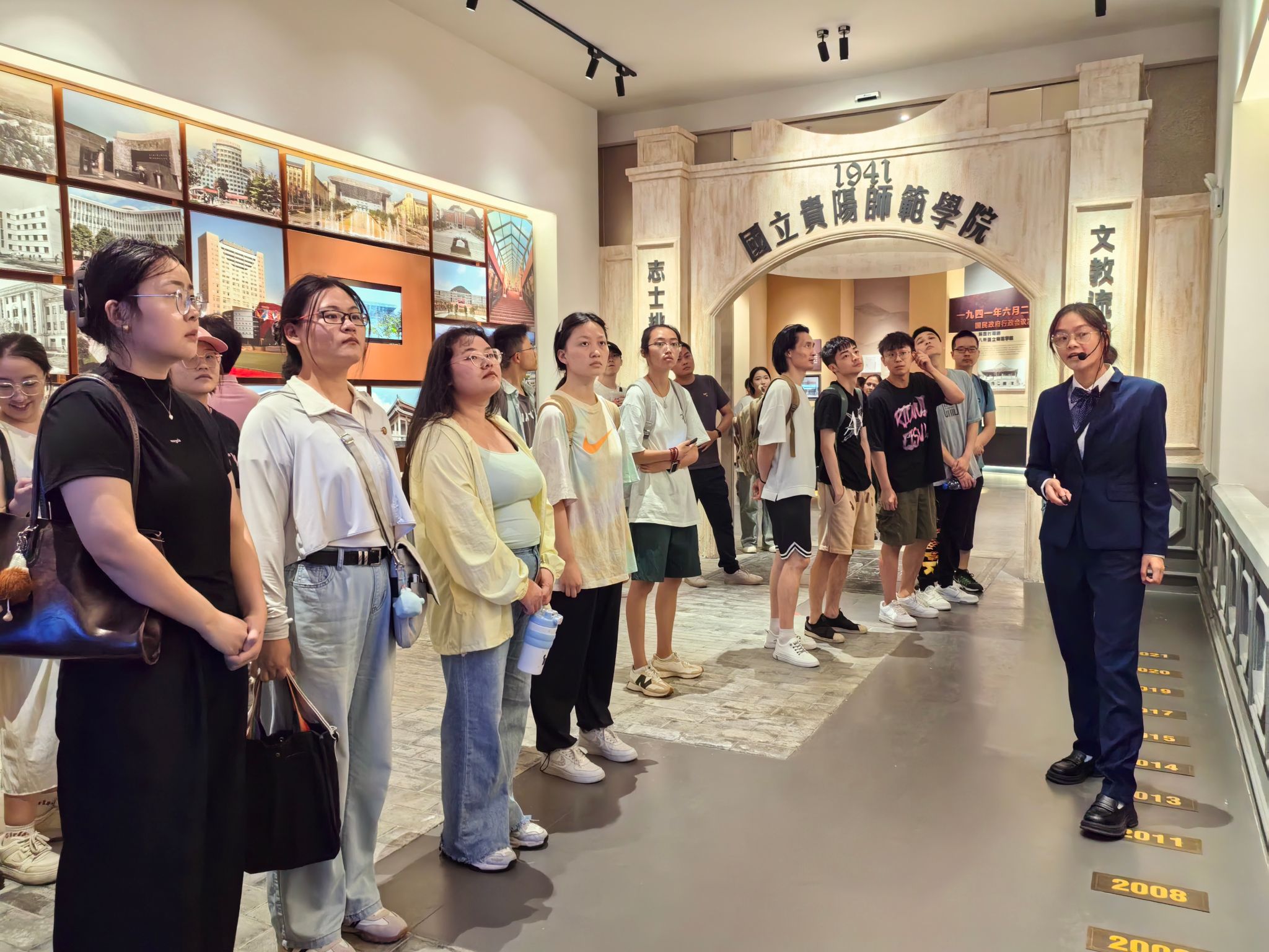 参观开始时,同学们在讲解员的引导下,在校史馆内有序前行,依次参观了国立贵阳师范公司、贵阳师范公司和mk体育官方平台三个时期的展区。讲解员从公司的创办背景、发展历程,到重要事件、杰出人物等方面逐一进行介绍,带领大家了解了公司自创办以来的光辉历程、发展脉络和不同时期的精神风貌,一件件实物展品和一段段文字充满了故事与感动,吸引着同学们驻足注目。同学们在校史馆中还利用辅助沙盘、场景还原、多媒体等现代技术对师大八十余载的历史有了更加深刻的了解。参观结束后,同学们在校史馆入口处合影留念。