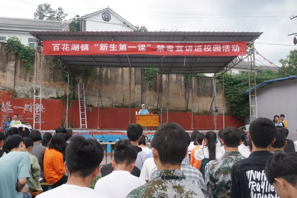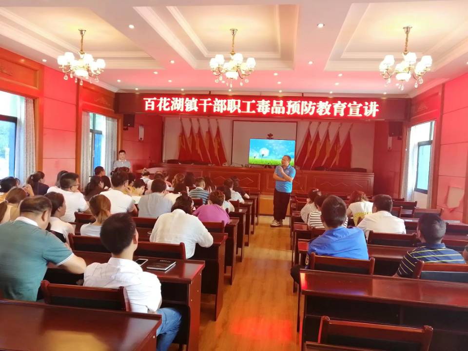 第一小分队由mk体育“三下乡”志愿服务队领队郑传章带队,于百花湖人民政府会议室为百花湖镇人民政府部分干部职工开展了“百花湖镇干部职工毒品预防教育宣讲”,参会人员计六十余人。讲座以干部职工喜闻乐见的形式展开,让公职人员深刻了解了党和政府的禁毒决心,增强了他们禁毒意识。在做到以身作则的同时,加大向周围的群众宣传禁毒知识的力度。