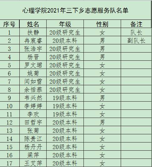 最终有17名志愿者脱颖而出,成为mk体育2020年暑期“三下乡”服务队成员。此次mk体育“三下乡”服务队由7名研究生和10名本科生组成,并由2020级研究生扶静担任队长一职,2020级本科生冉宸睿任副队长。