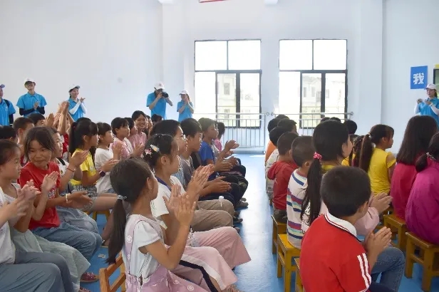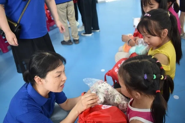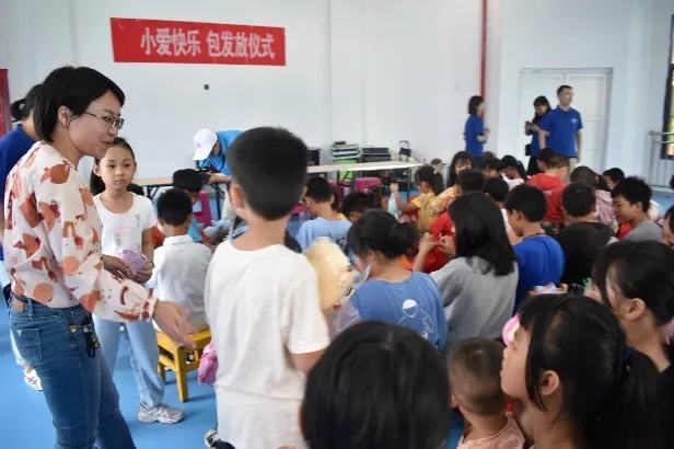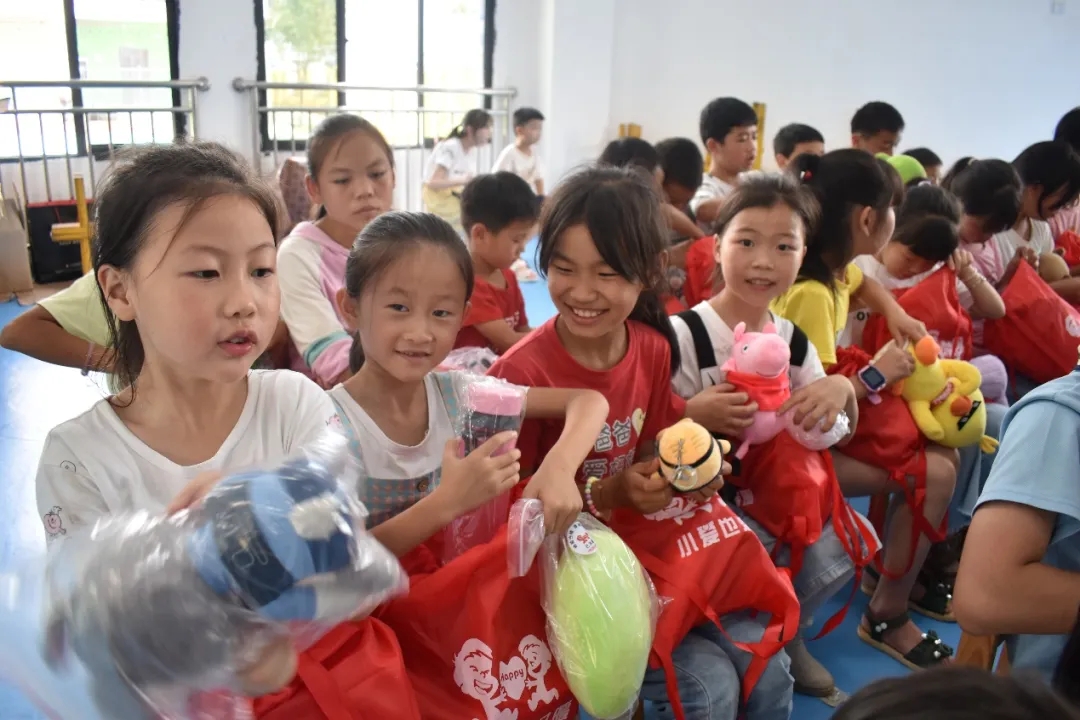 小朋友们拿到礼物后,脸上洋溢出幸福的笑容,嘴里不停地说着“谢谢”。