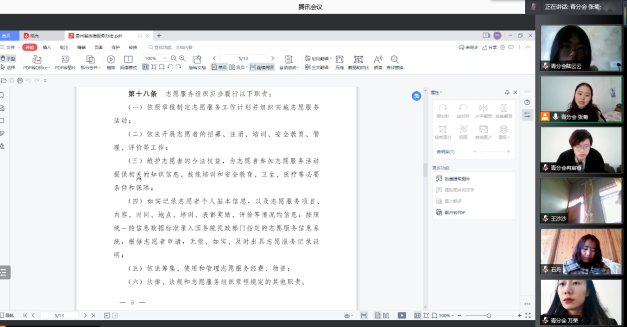 会议伊始,领学人张菊对《办法》条例进行详细解读,同时延伸至青分会日常工作,找准问题,引发讨论,结合实际,制定方案。进一步的完善我会的规章制度和规范全体工作人员进行志愿活动时工作流程。