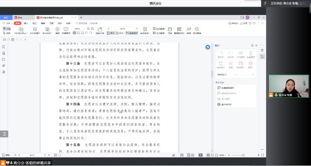 为进一步加强公司志愿者管理,以及确保未来志愿活动项目的顺利开展,公司青年志愿者分于1月19日以线上会议形式组织《贵州省志愿服务办法》专题学习,本次学习由副会长张菊主持,mk体育青分会全体工作人员及各班青年委员参与学习。