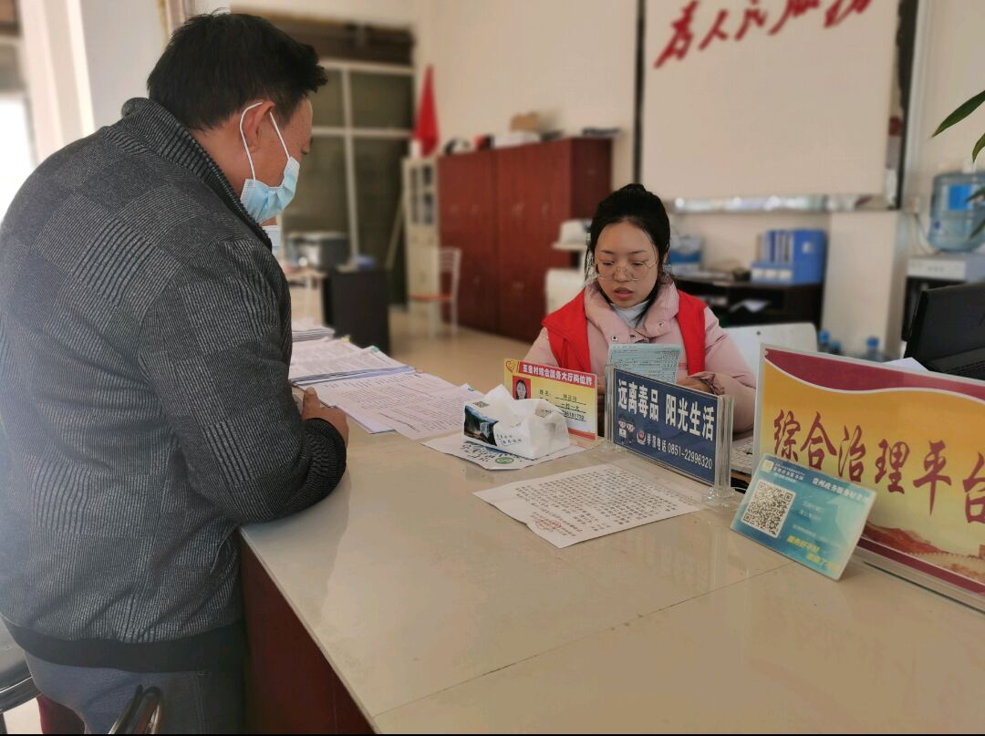 2021级研究生龚蓝英,在家乡——贵州省赤水市官渡镇玉皇村,参与到疫情防控工作,为外省返乡人员进行信息登记。