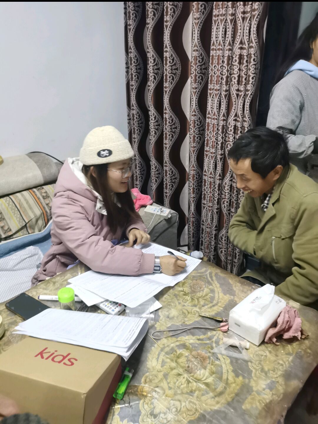 2020级应用心理学班韩影,在家乡——贵州省思南县板桥村后屯社区,参与到当地异地搬迁调查工作中,为居民进行异地搬迁调查工作。