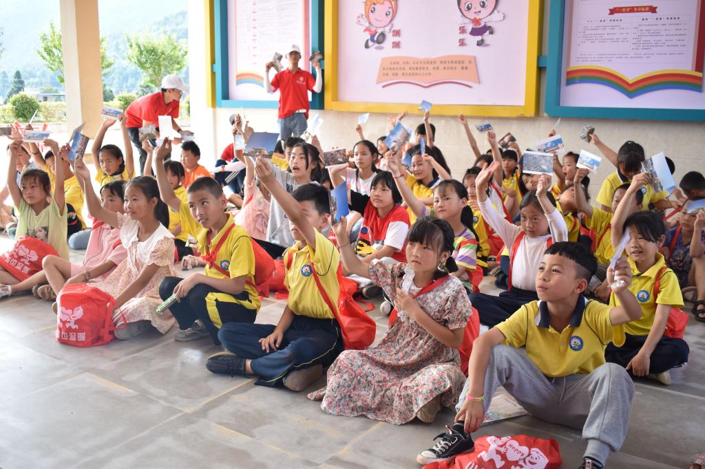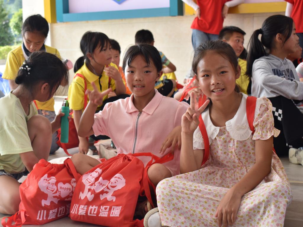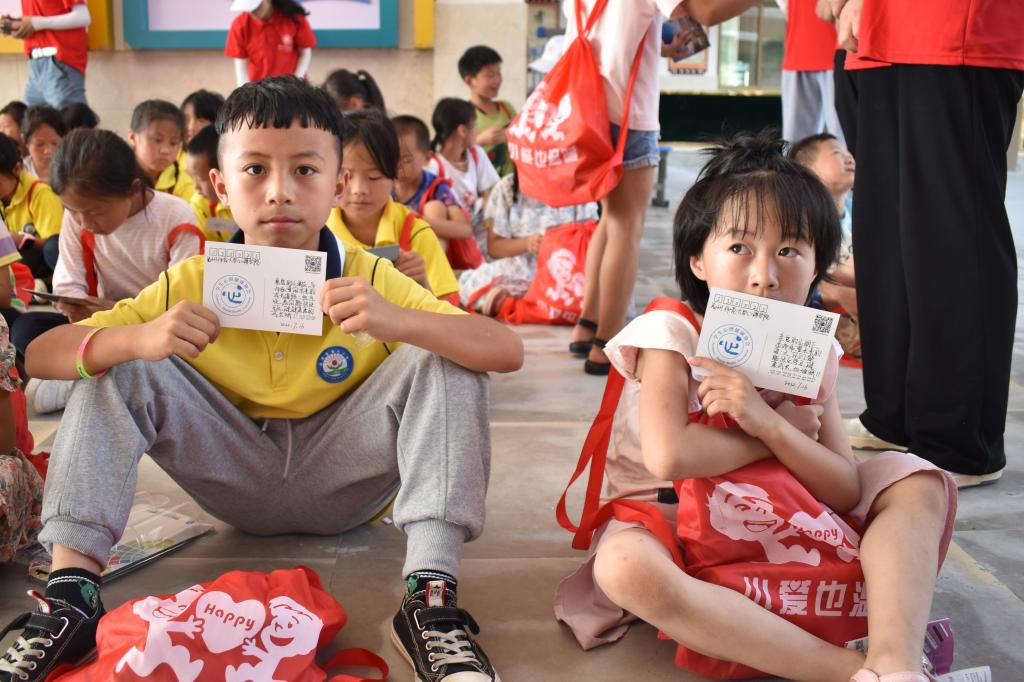 亲子团辅结束后,小朋友们一个个按顺序领取小爱包,他们一笔一画地写下自己的名字,从志愿者手中郑重地接过小爱包,迫不及待地打开礼包,拿出五子棋、水杯、跳绳、彩铅、口琴、字典等物品,脸上洋溢着开心的笑容。有些孩子翻起了字典,有些孩子吹起了口琴,有些孩子拆开了跳绳,他们眼中不仅流露出对收到爱心物品的欣喜,也藏着对美好生活的向往。“小爱也温暖”,对孩子多一点点的关爱也能温暖他们幼小的心灵,为他们茁壮成长添一份阳光。