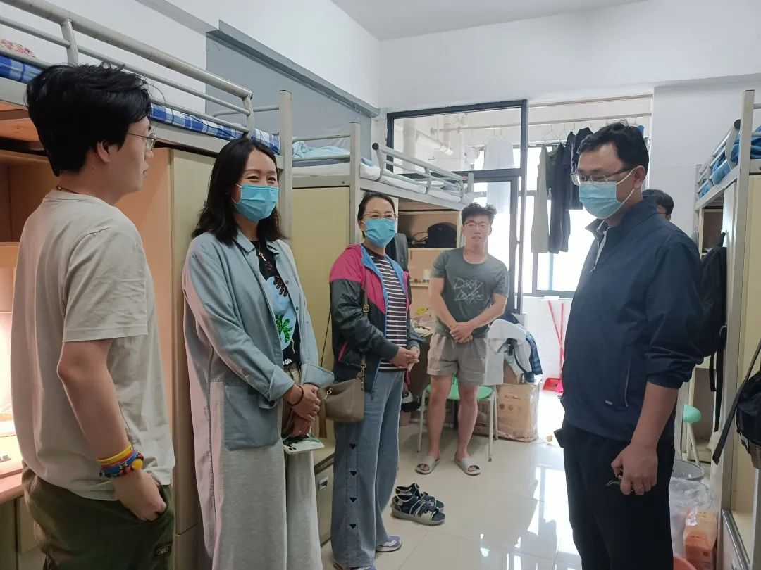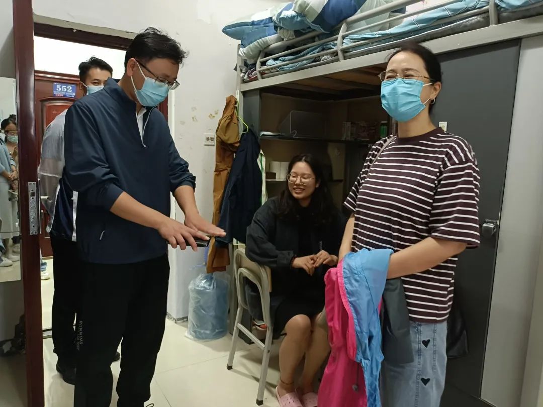 为进一步了解新生住宿和生活情况,关注新生疫情防控期间心理健康,9月4日下午,mk体育官方网站入口党委书记杨建原、经理潘运、党委副书记饶蕾,以及辅导员姚成奎一行走访了研究生新生寝室。