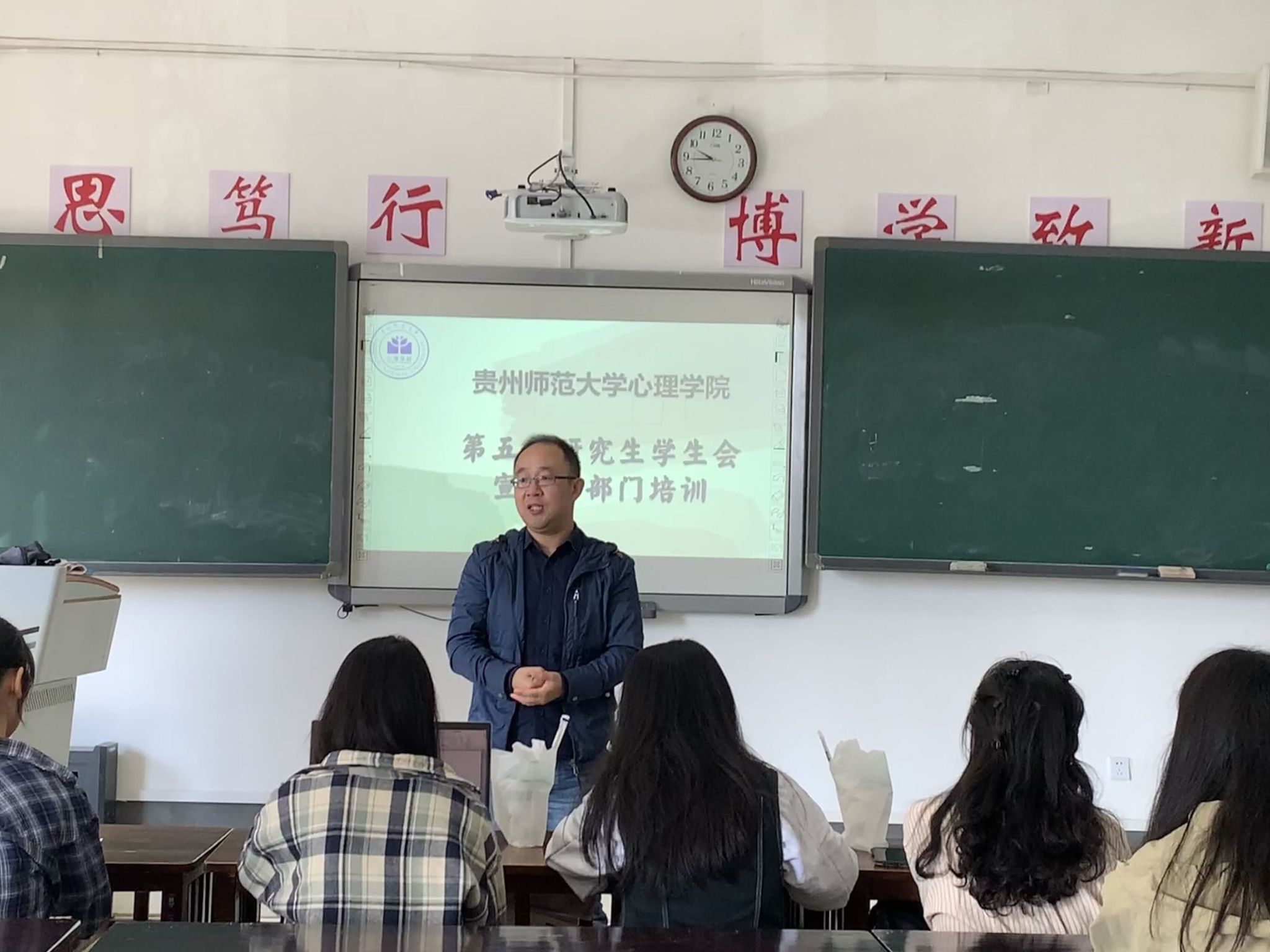 培训开始前,裴子钊老师对宣传部的主要职能进行了简要介绍,并对以后工作的开展提出相应要求。他强调,宣传稿件要注重时效性,同时,要掌握规范的写稿流程和逻辑顺序,同学们要充分利用网络资源,多阅读,多学习,以灵活创新的方式提升宣传效果。裴子钊老师希望成员们在宣传工作中不断积累撰稿、拍摄的经验,为今后的学习和工作打下坚实基础。