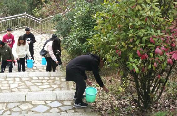 全体参与人员自备钳子、垃圾桶、垃圾袋等工具,迎着寒风,从山脚到山顶,他们不嫌脏,不说累。小心留意,誓要不留一个垃圾。