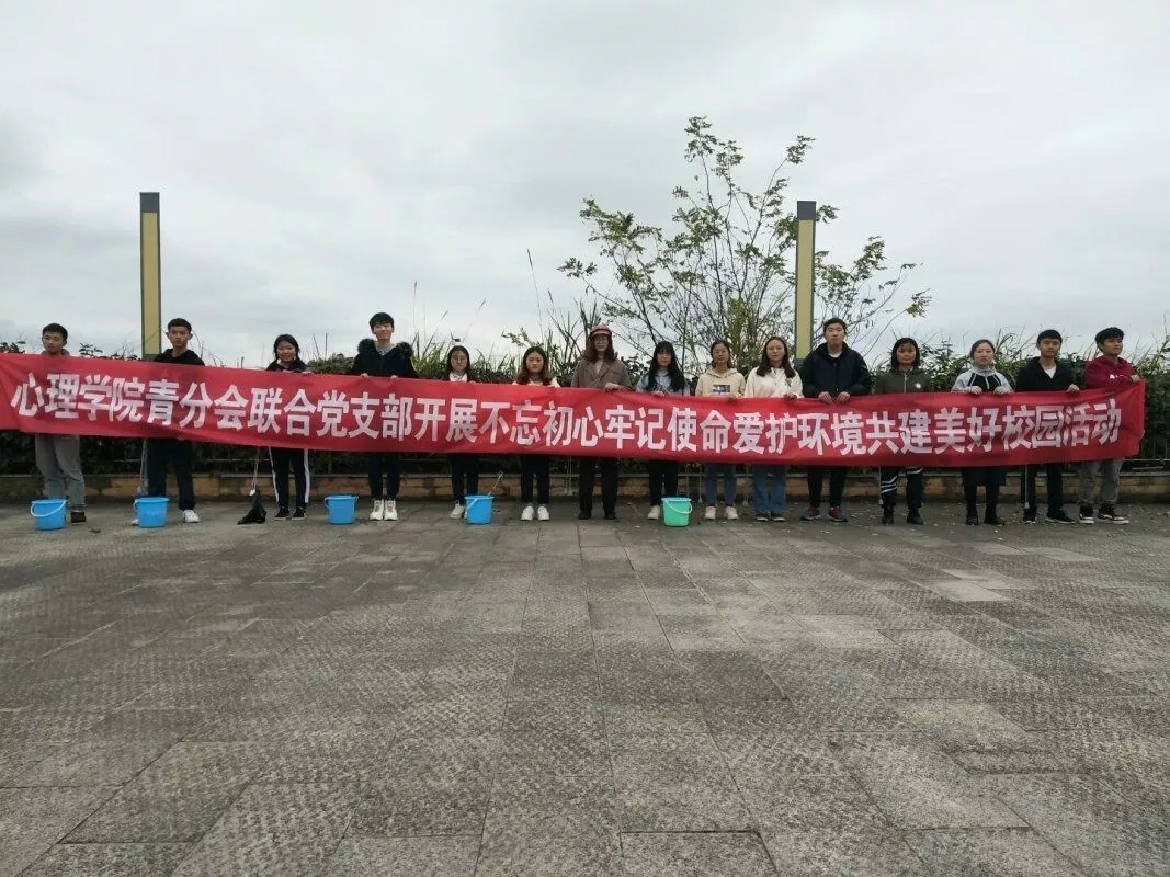 mk体育青分会携手本科生联合党支部开展“不忘初心、牢记使命—爱护环境共建美好校园”活动