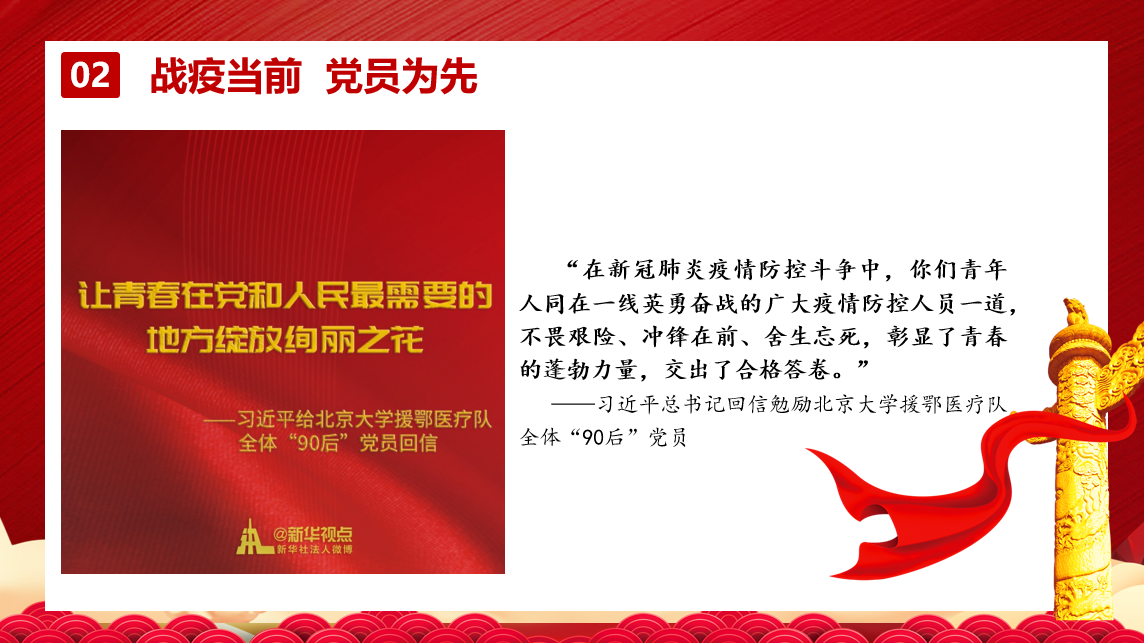 通过讲述抗疫一线90后党员不畏艰险、冲锋在前、舍生忘死的先进事迹,让同学们感受到了青春的蓬勃力量,备受鼓舞。