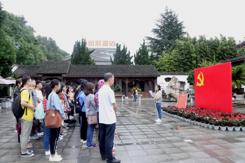 师生们参观了王若飞故居,在王若飞故居陈列馆广场,副经理潘运主持开展了“不忘初心强党性,牢记使命当先锋”主题教育实践活动,公司党委书记杨建原带领全体党员面对党旗,重温入党誓词。接着,2018级研究生党员肖寻作了“不忘初心,牢记使命——纪念中国共产党成立98周年”主题教育发言,她说,在建党98周年前夕,我们在这里共同缅怀革命先烈,重温入党誓词,明确中国共产党人的初心和使命。作为新时代的青年党员,我们应当坚定理想信念,勇于担当历史使命,在学习中锤炼品格,奉献祖国,服务人民。作为心理学专业的一名员工,一方面要认真学习专业知识,打牢理论基础,并将理论知识运用到实际生活中,在实践过程中找出自己的不足,才能有针对性地提升,另一方面要提高党性修养,周期性地阅览与党有关的书籍,增强“四个意识”,坚定“四个自信”,向优秀党员学习,主动投身到祖国所需要的地方,贡献出自己的一份力量。