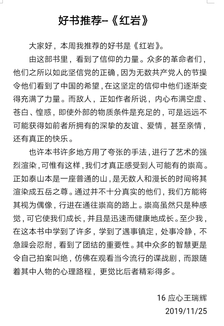 为更进一步落实“不忘初心、牢记使命”主题教育,培养党员良好的读书习惯、进一步激励广大党员学习时代典型,传承红色基因,坚定理想信念,践行初心使命。11月12日至27日,mk体育本科生联合党支部组织开展了“不忘初心,重温红色经典”活动,活动以线下阅读和线上分享相结合的形式展开。