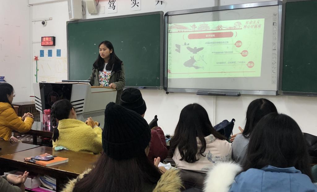 11月29日,mk官网首页2018级应用心理学班于公司楼2215教室开展“团支部上团课”特色系列活动第一期——团支部书记上团课活动。本次活动以团课形式学习党的十八大提出的社会主义核心价值观为主要内容。本次活动由团支部书记赵可怡主持,2018级应用心理学班全体员工参加。