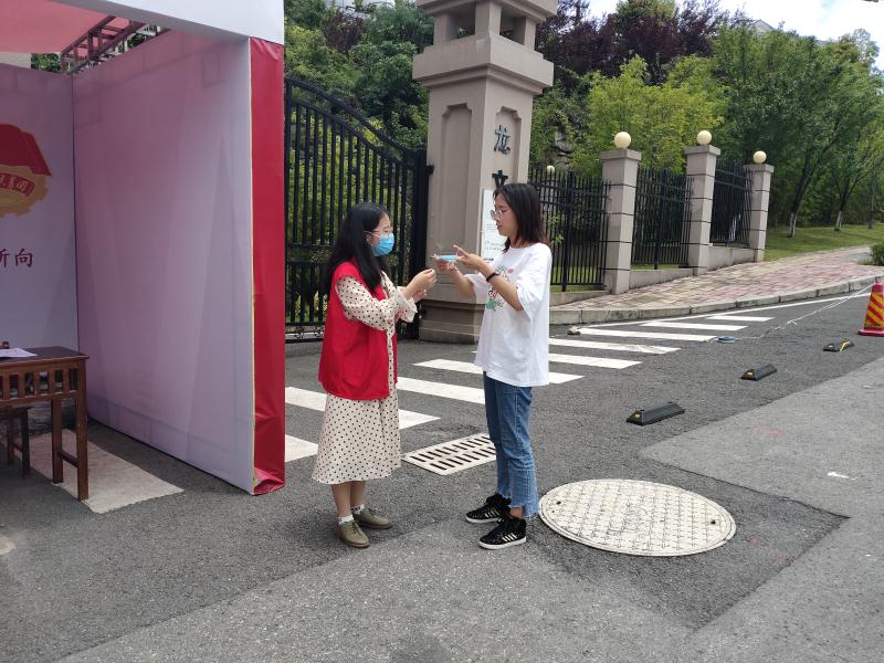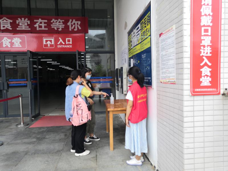 我支部将党员分为10组,每组两人,分别安排在三个服务点。党员志愿者在食堂门口引导大家佩戴口罩、洗手消毒,在东大门和龙文苑出入口处监督出入口记录人员是否工作正常,提醒往来人员佩戴口罩等。整个服务过程中,党员志愿者们认真负责,举止自然大方,谈吐文雅,展现了良好的精神风貌。