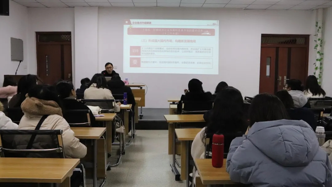 12月11日下午,mk体育经理潘运在花溪校区GS5206教室,以《深入学习贯彻党的十九届五中全会精神》为主题,为2018级、2019级研究生上党课。