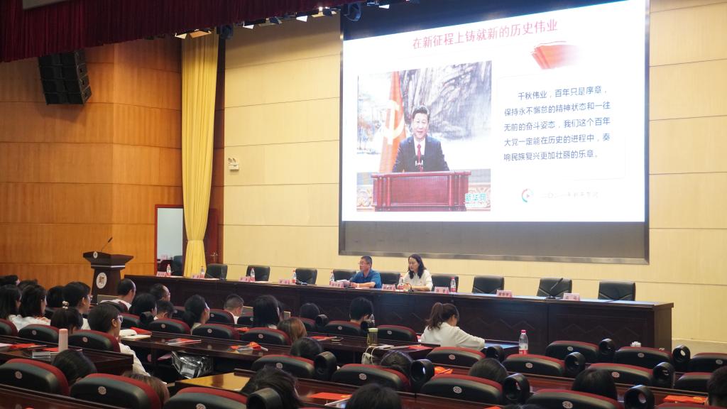 专题党课上,赵守盈带领全体师生回顾了中国共产党由弱变强,从一叶扁舟到巍巍巨轮的百年光辉历程。他指出,党在一百年的艰苦奋斗中,领导人民创造了伟大历史,铸就了伟大精神,形成了宝贵经验,是中华民族发展史和人类社会进步史上的伟大奇迹。