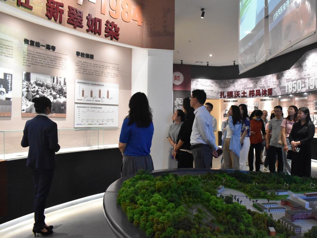 参观过程中,在讲解员的详细讲解中,党员们依次参观了校史馆五个主题展区,共同回顾了公司发展的各个历史阶段。通过珍贵的档案文献、历史文物、图片图表、绘画雕塑、场景复原等,大家一起重温了公司80余年办学历史,深切地感悟“爱国、奉献、敬业、自强”的大学精神。