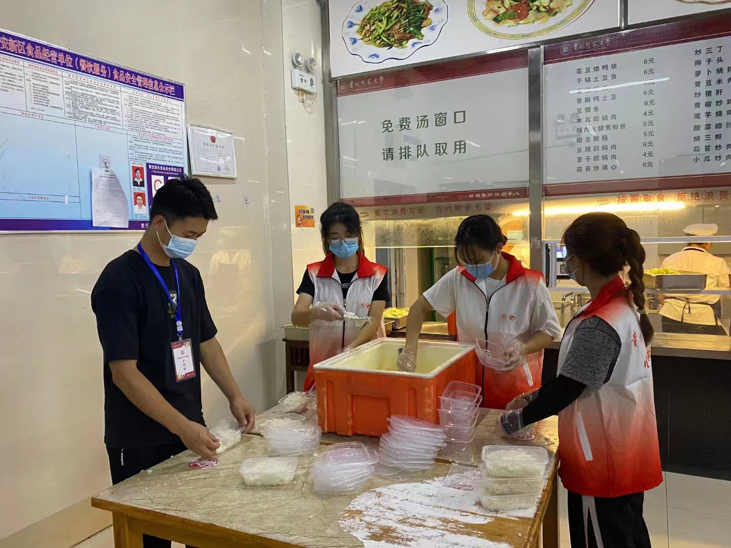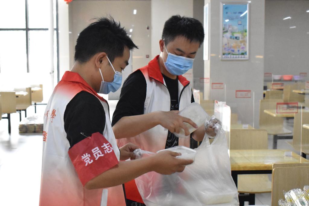 疫情无情,人间有爱。赢疫情防控攻坚阶段,公司宝山校区内食堂关闭,为解决宝山校区近5000名员工就餐问题,公司每日从花溪校区准备好三餐运送到宝山校区。mk体育官方网站入口党员师生闻令而动,积极参与到为宝山校区员工打包、发放盒饭的工作中。